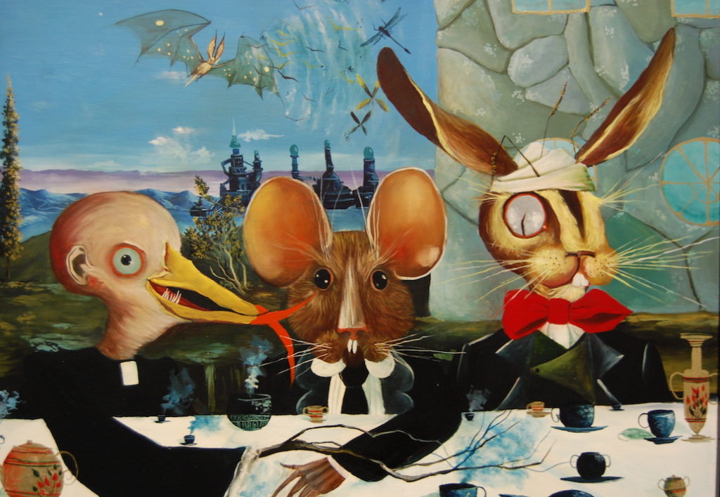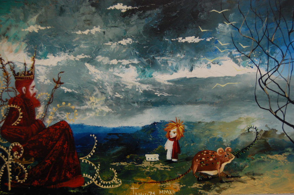 Roberto Carlos Hernández «el Tan», «Juzgando a la rata», óleo sobre tela. 21×36.5. Foto: Ada Lorena