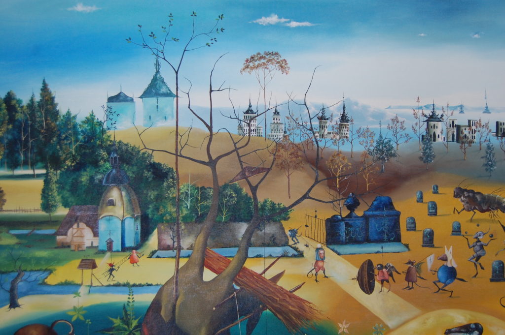 Los seres que habitan en sus cuadros conviven entre sí, algunas veces se devoran porque como en todas las sociedades existe el caos; el fuego, uno de los cuatro elementos, daña los bosques fomentando aún más el desconcierto de sus personajes.